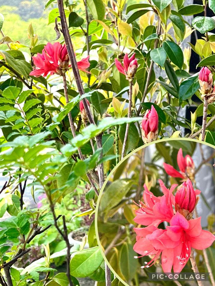 鉢植えのツツジが咲いてくれました😃ツツジの色も可愛く山椒の葉の緑も新鮮に感じ嬉しいです😊元気貰えます💕
