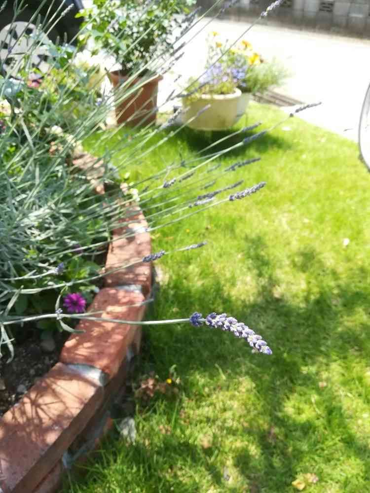 オリーブ花壇に植えているラベンダーが咲きはじめました。無事夏越しできて、順調に大きくなっています。