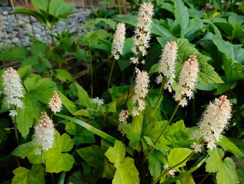クリスマスローズとティアレラとシュウメイギクのエリア、夏の間は木陰になるので、お日様大好きなお花はなかなか育たない場所なのです🌳
