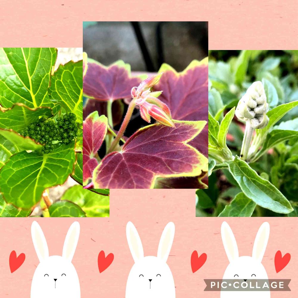 アジサイ、もみじ葉ゼラニウム、ブルーサルビアの花芽が出来ていました😊✨