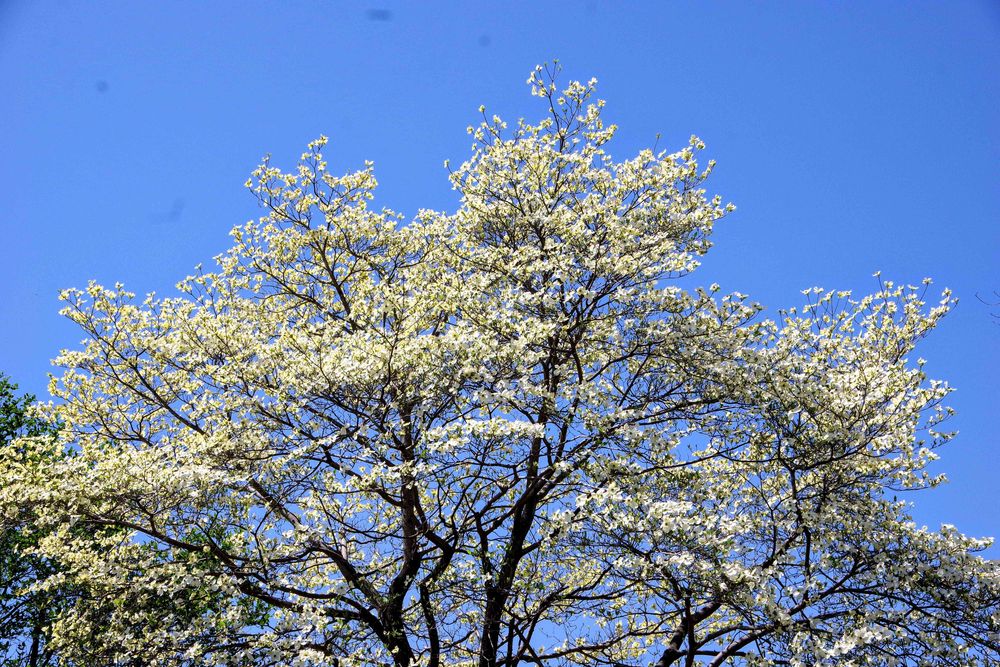 桜の花が終わるのを待ちかねていたように、大きな花水木が大空いっぱいに枝を広げ、真っ白の花を咲かせました