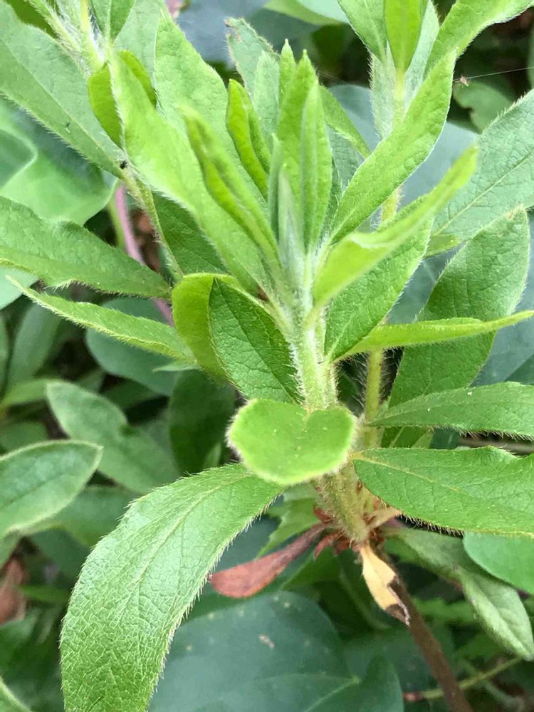 ツツジ が 咲いた後 の 若葉のうぶ毛 が なぜか好きだった。散歩していて 思い出した 少年時代