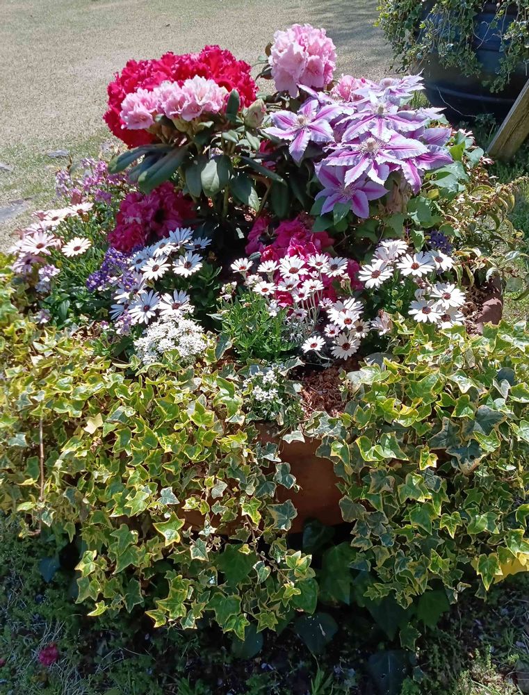 凄い大きな鉢に盛り沢山のお花が、ぎっしりと咲いてました😊