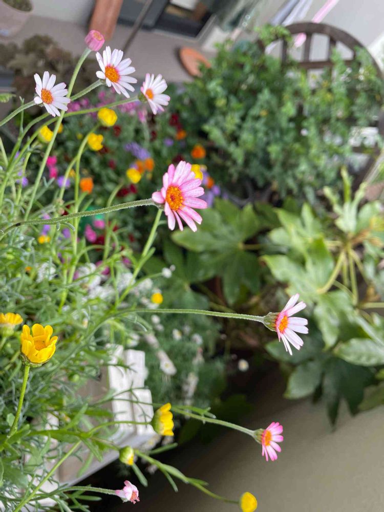 今日は午後から雨になりそうですね☔️我が家のローダンセマムが満開です💕︎
