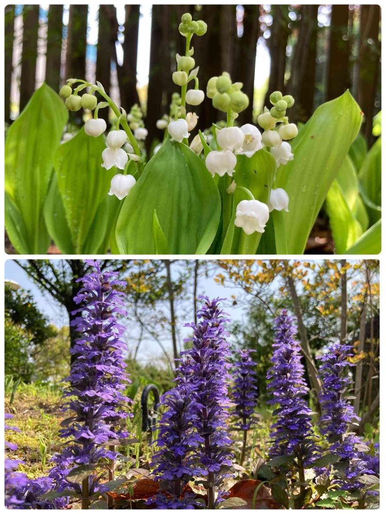 こんばんは、綺麗なスズランとアシュガですね。