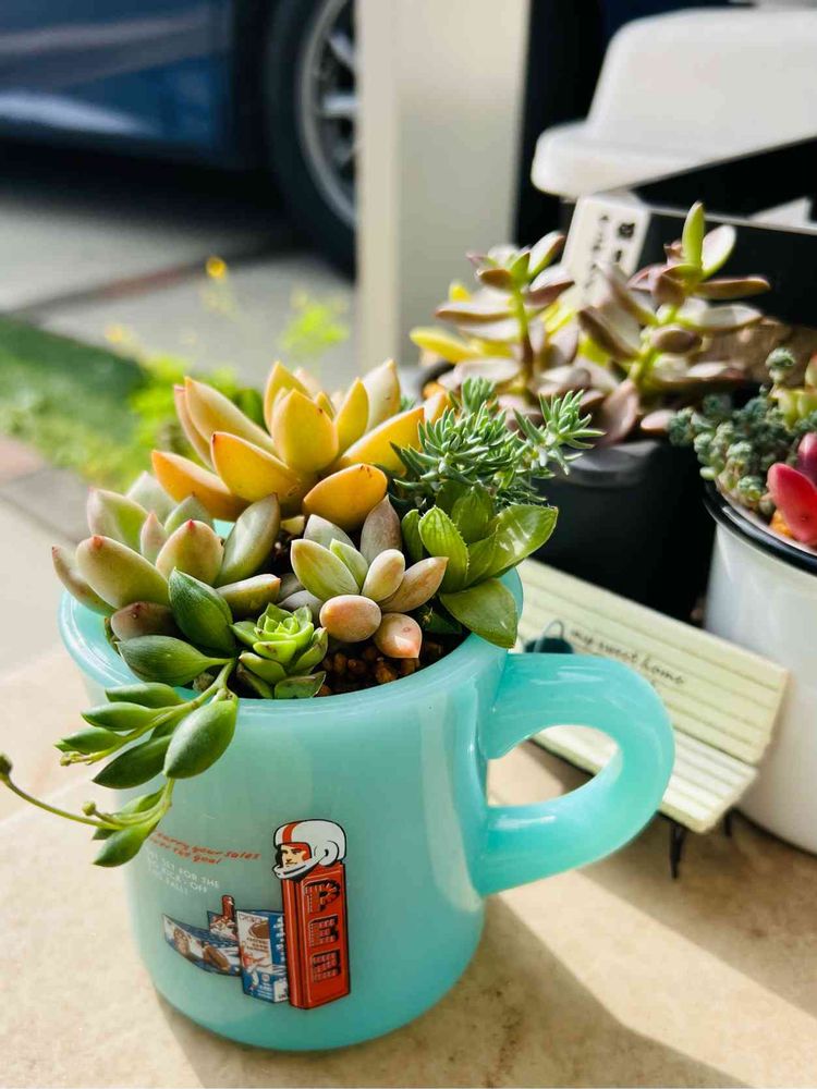 お気に入りのマグカップがヒビ割れちゃったのでせっせと寄植え😂🌱