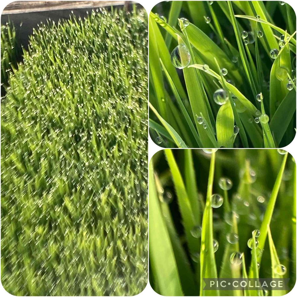 昨日の朝の育苗ハウスの中のイネの溢液現象です💧