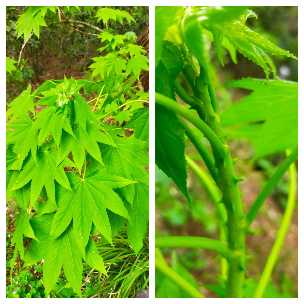 ハリギリの若い枝にもトゲトゲがしっかりありましたが、まだ触っても痛くなく、ぷにっと柔らか〜い😍