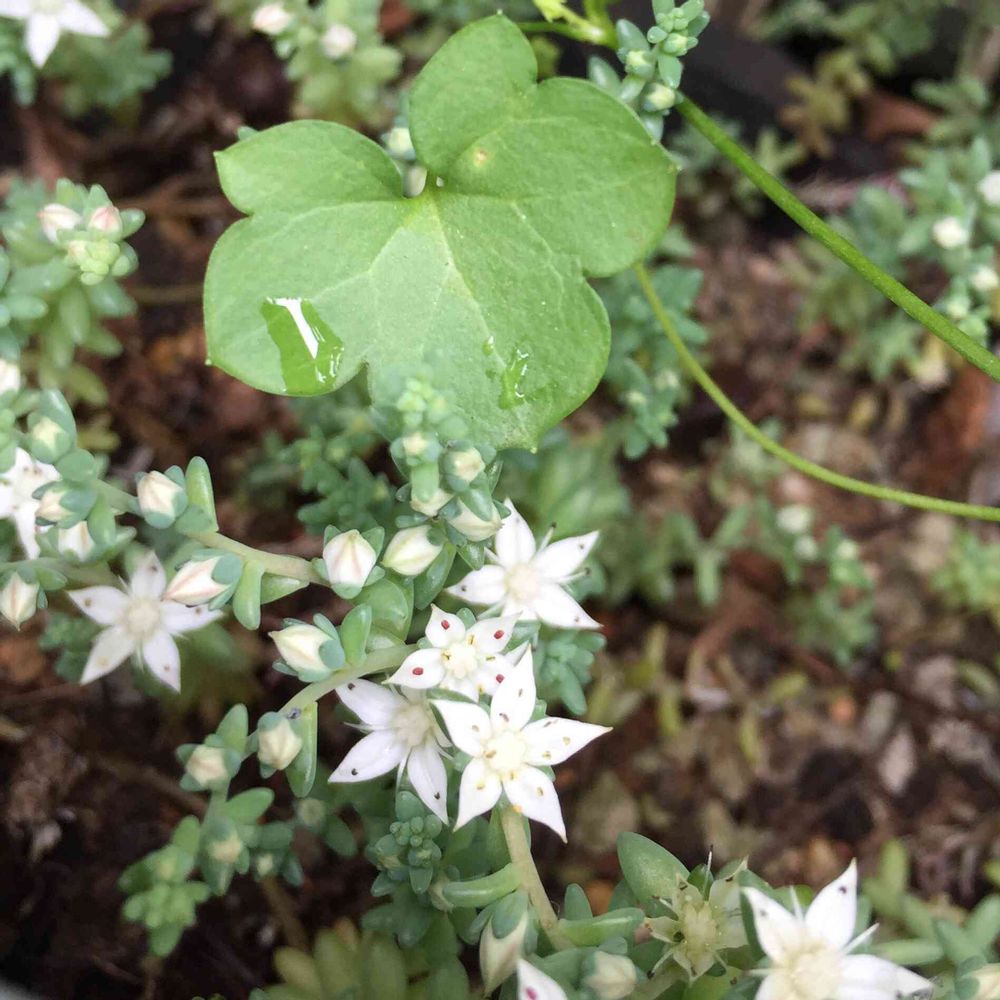 原種シクラメンのコウムと一緒に植えてるセダムがひっそりと咲き始めました。植えて結構経つけど、お花が咲いたのは初めてな気がします。