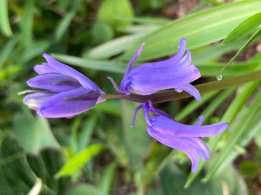 こんにちは😃放ったらかしガーデンにて。初めまして。シラー カンパニュラータかな?ツリガネスイセンかも?昨秋蒔いたミステリー種から咲きましたよ👍😃🎶
