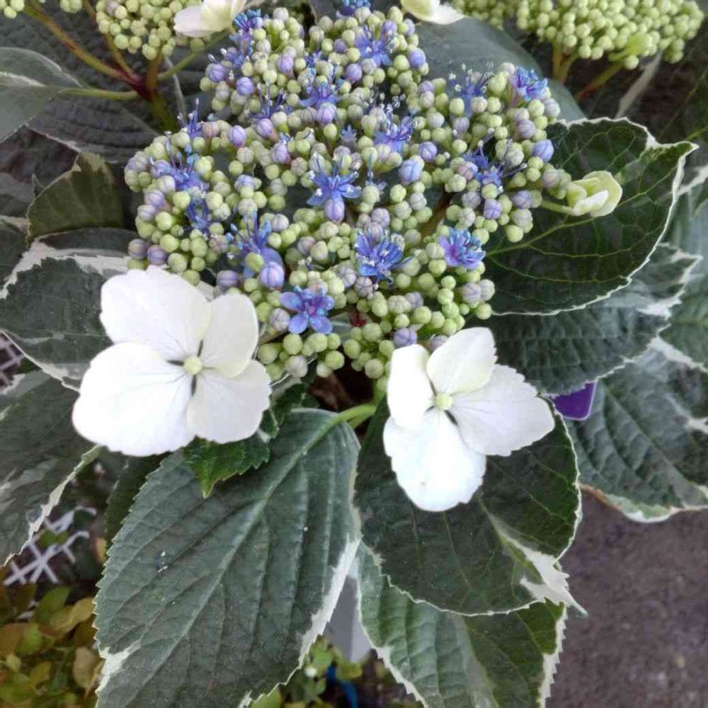 斑入りの美しい葉っぱの紫陽花です。珍しいですね♡