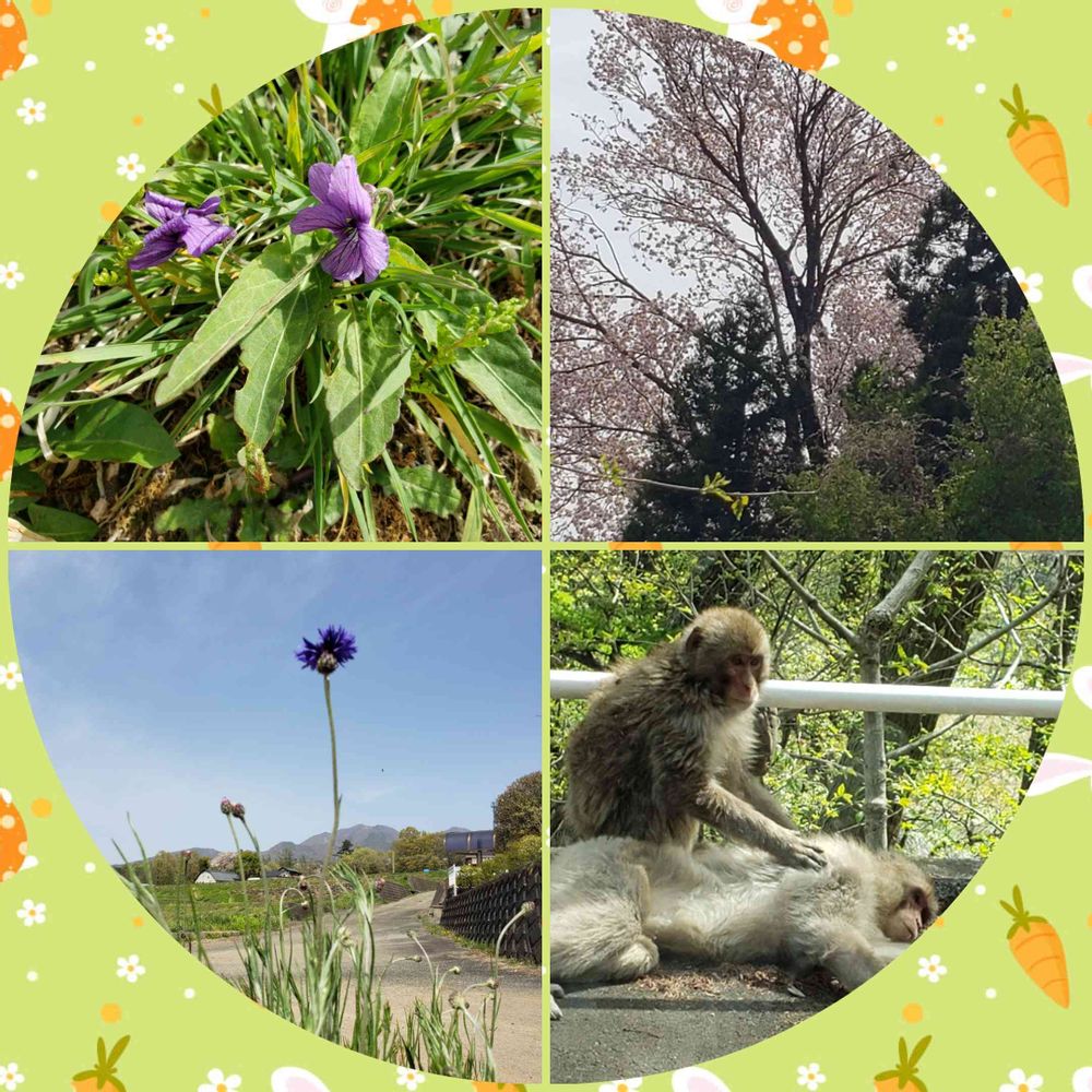すみれ ヤグルマ草 山桜。そして お猿さん🐵です。