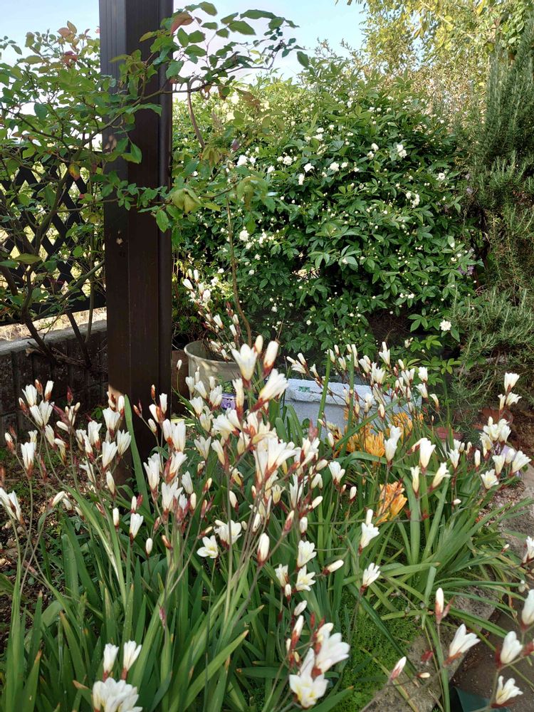 小さな庭,スパラキシス,白モッコウバラの投稿画像