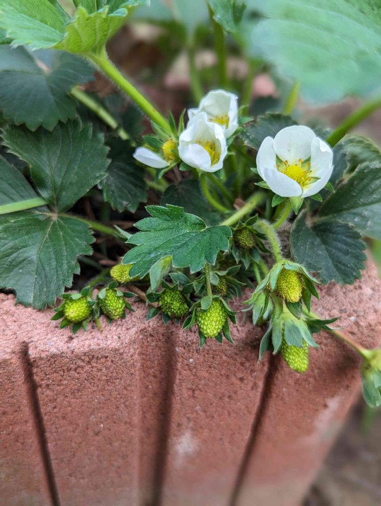 いちご🍓が地べたに直接付かない様に植えてみたよ