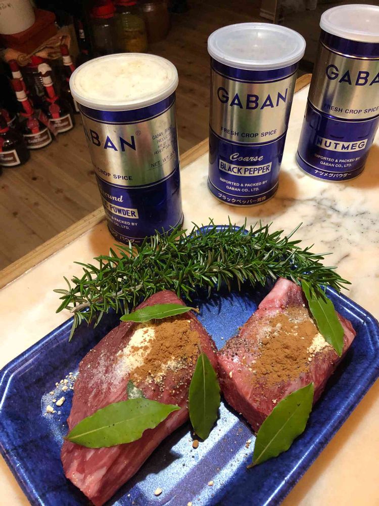 室温に戻したお肉に、塩と香辛料をまぶして、1時間。