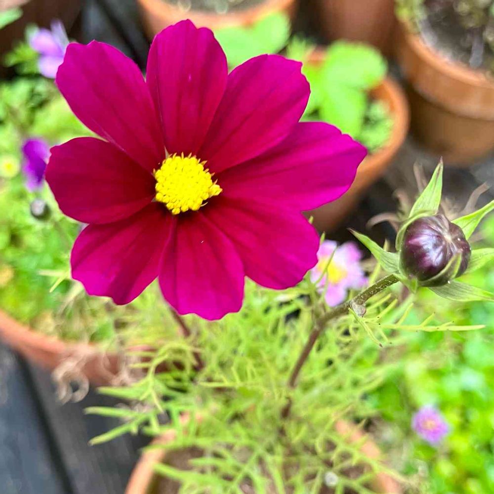 今朝はベビーコスモスの濃いピンクが咲きました🎉。