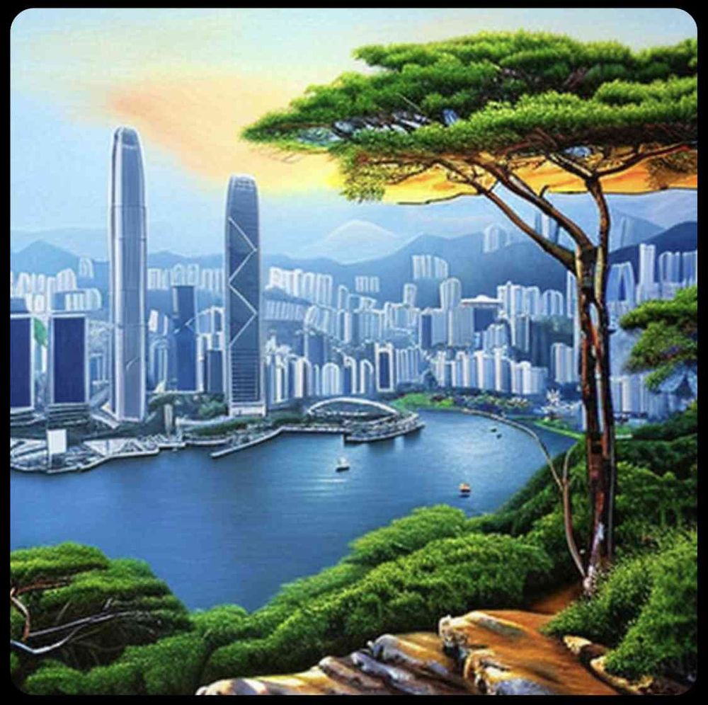 10K,高品質,写実的,油絵, 風景画 , リアル, 絶景スポット, 香港, ヴィクトリア・ピーク