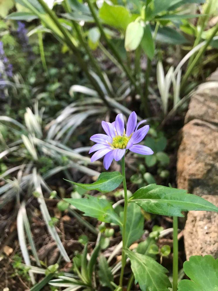 今日は都忘れ。半日陰にひっそり咲く春の花。