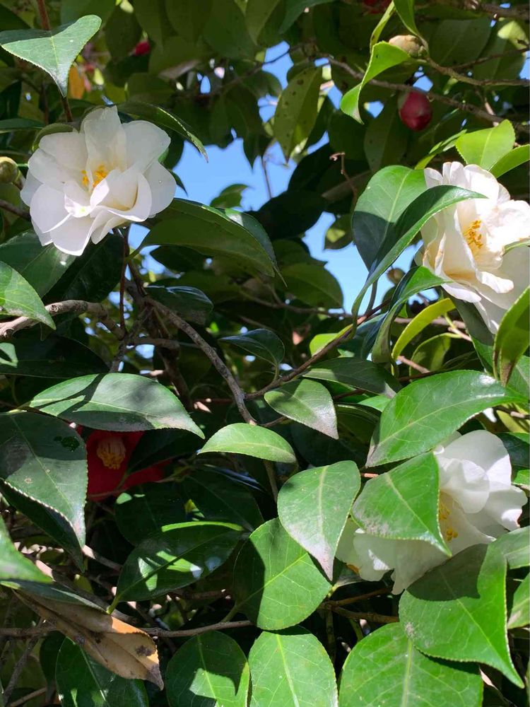 最後になって、美しい白椿に出会いました。