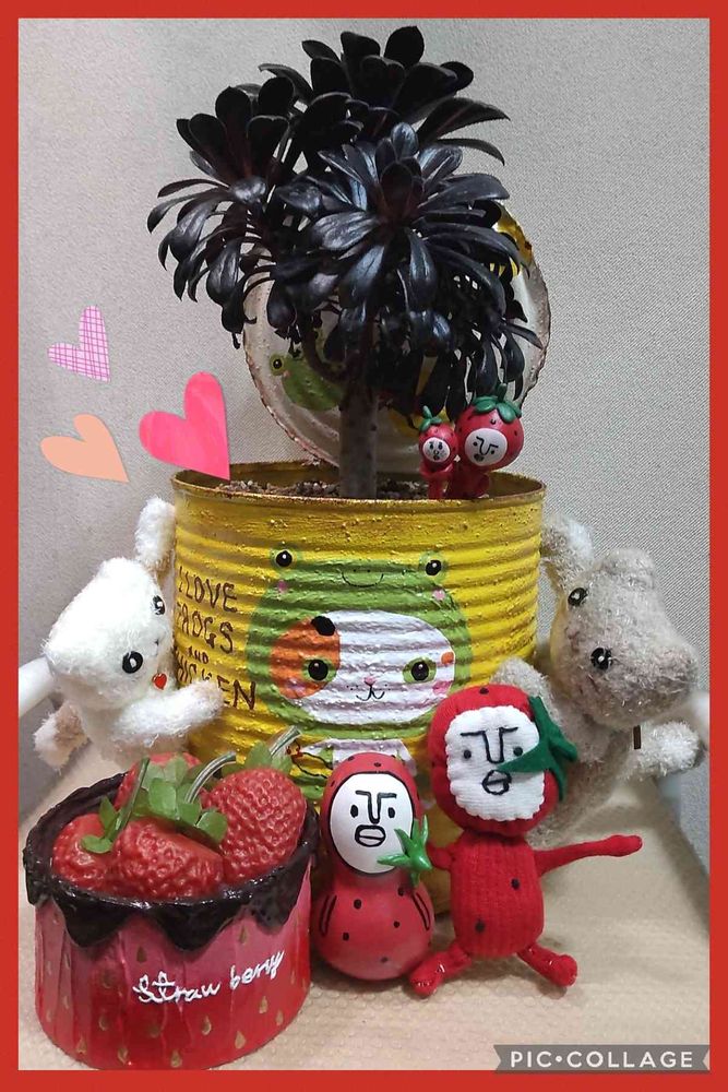ぷりまみさんのかわいいリメ缶にイチゴマン🍓ニャン🐈チャンもかわいいね〜