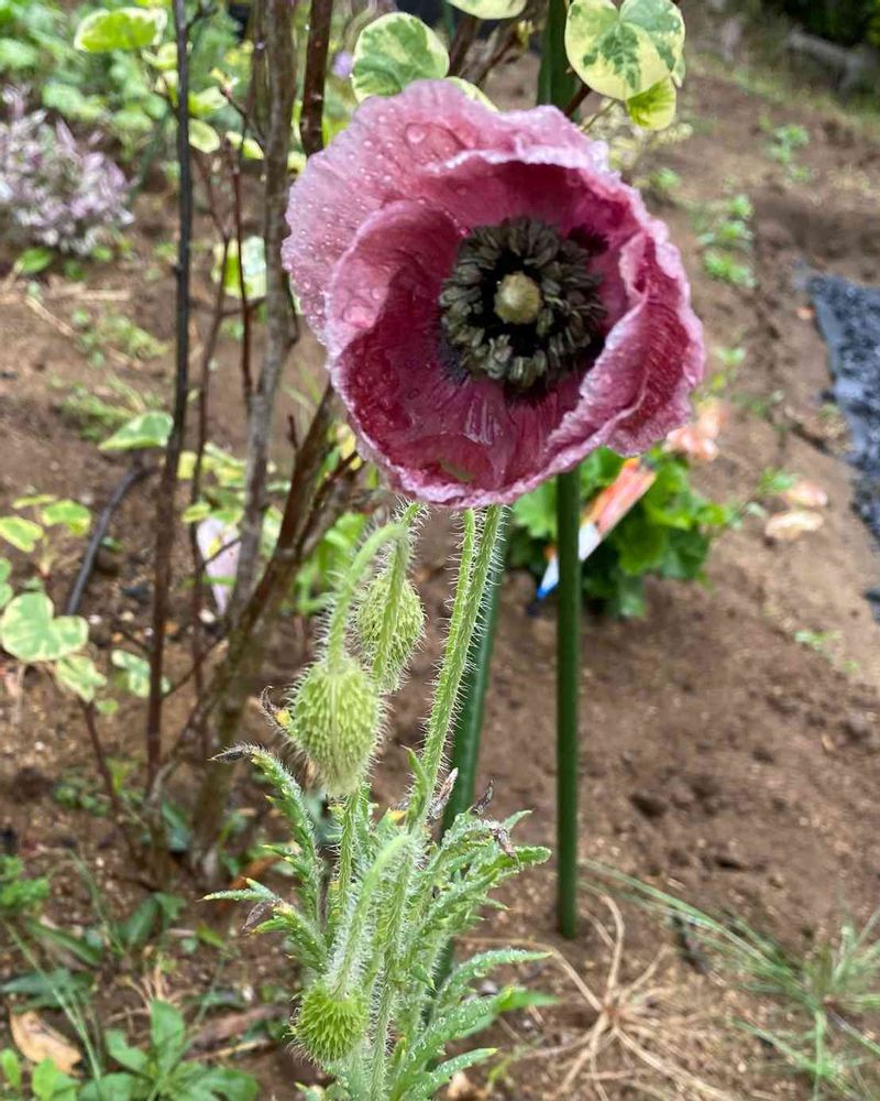 今日は一日雨☔️予報ですが、我慢できず庭に出てみたところ、ポピーアメージンググレイが咲いていました。グレイ?てかんじですが、美しいからヨシ👍