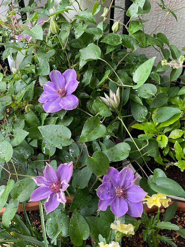 蕾が沢山見えていたクレマチス、咲き始めました〜🤗💜