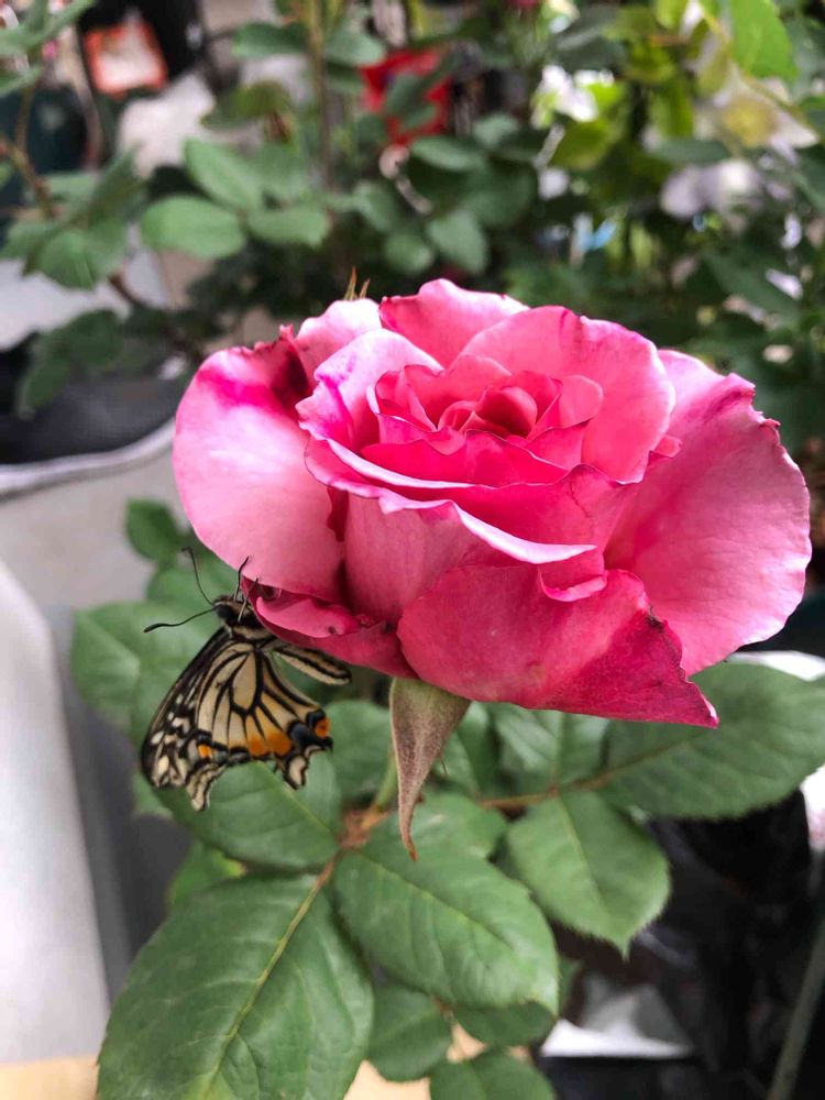 蝶は綺麗なんですよね。また、薔薇にもよく合います。が、青虫は厄介ですよね😅