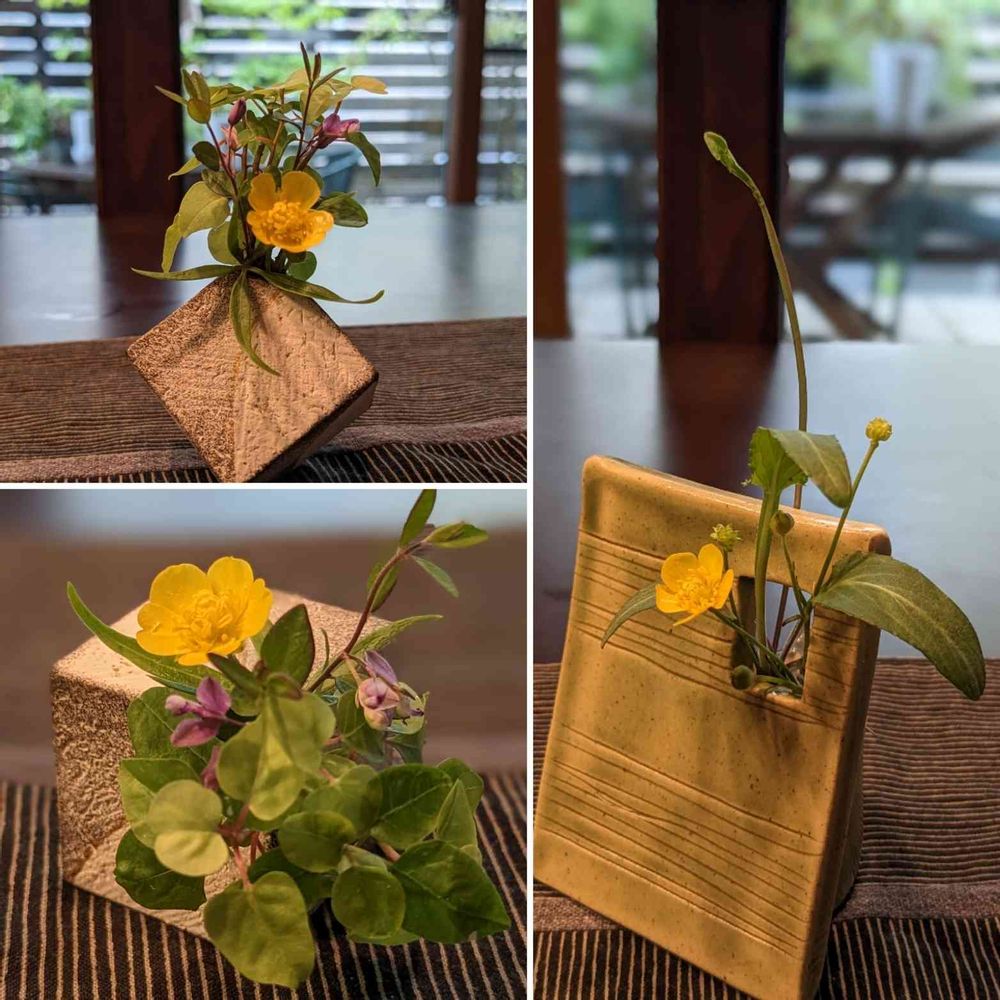 昨日公園で摘んだ~ヒメハギとウマノアシガタを食卓の小さな花瓶に入れました(^^)🎶