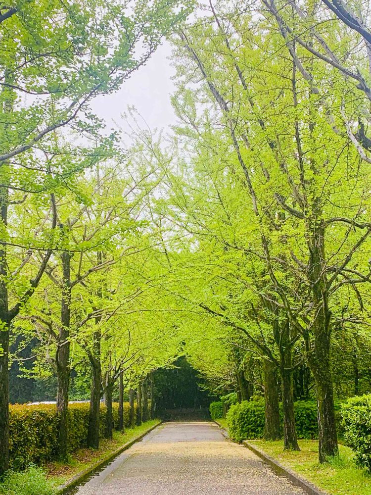 いえいえ、この日は仕事を休んで少し離れたところの公園に出向いた時の写真ですよ。雨が降っていましたが新緑がまぶしかったです。 (*‘∀‘)