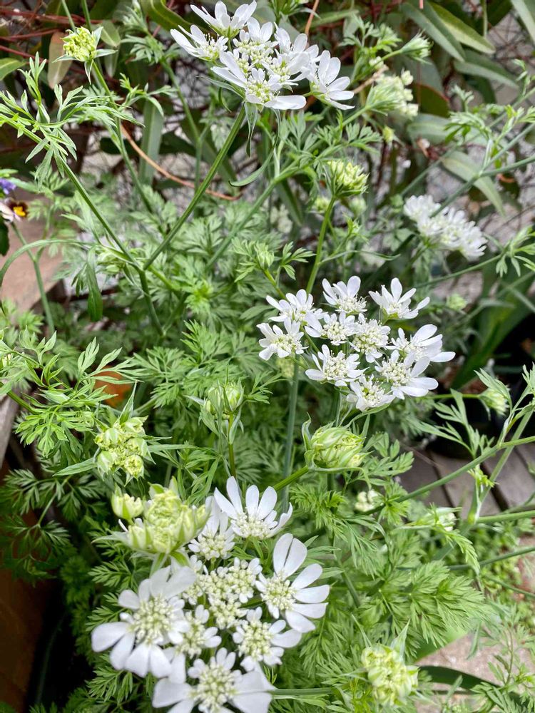今年はあちこち、こぼれ種で開花🌱🌿🤍