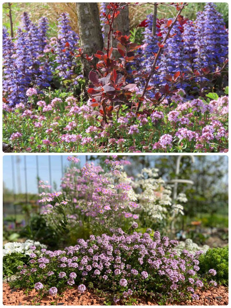アシュガが凄く👀目立って綺麗です❣️ それに花壇がまとまって来て凄く素敵になってます🥰