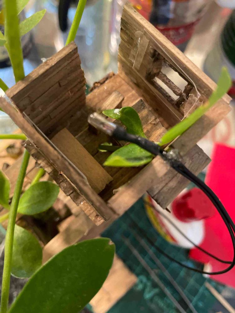 百均やら、 ホームセンターで売ってる 一番小さい観葉植物に、 ちっさい家、作ったりしてます。 ちっさい家用の家具も作ります。 窓にお弁当のふたとかのプラ貼って ガラスっぼく…電気もつきます💡