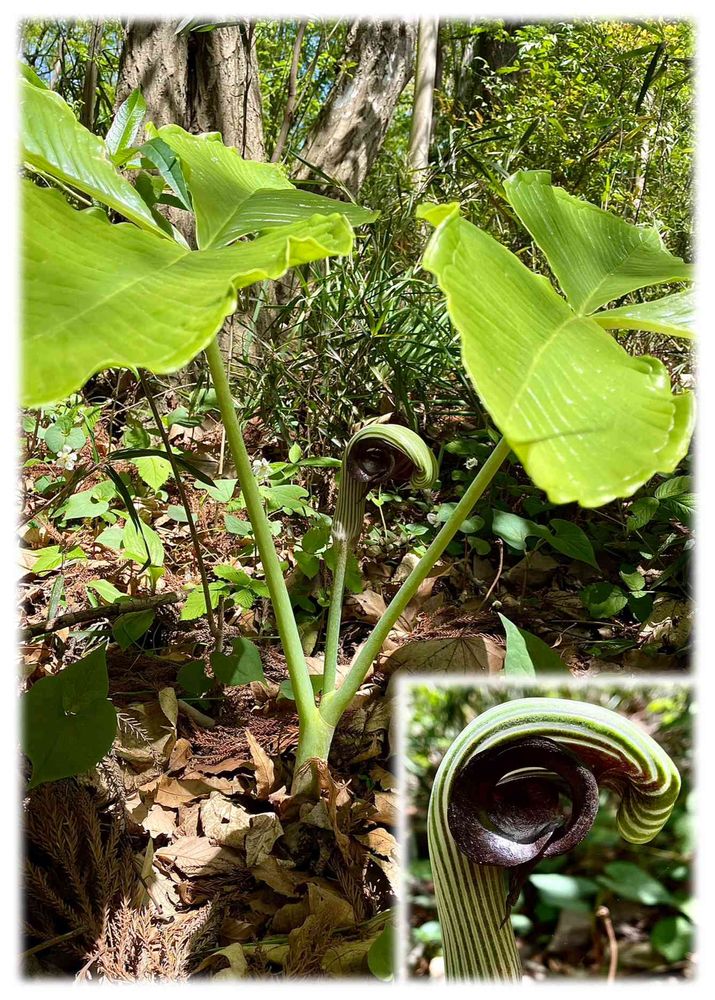 ムサシアブミはこの辺りで見たことないです。マムシグサかスルガテンナンショウばかりです。 このカッコイイムサシアブミ様をどうしても見たくて昨年家の庭の角に植えました(旦那ヘビ嫌い故に😅)