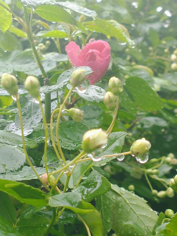 我が家の紅一点🌹アンジェラの一番花 雨の中咲きました