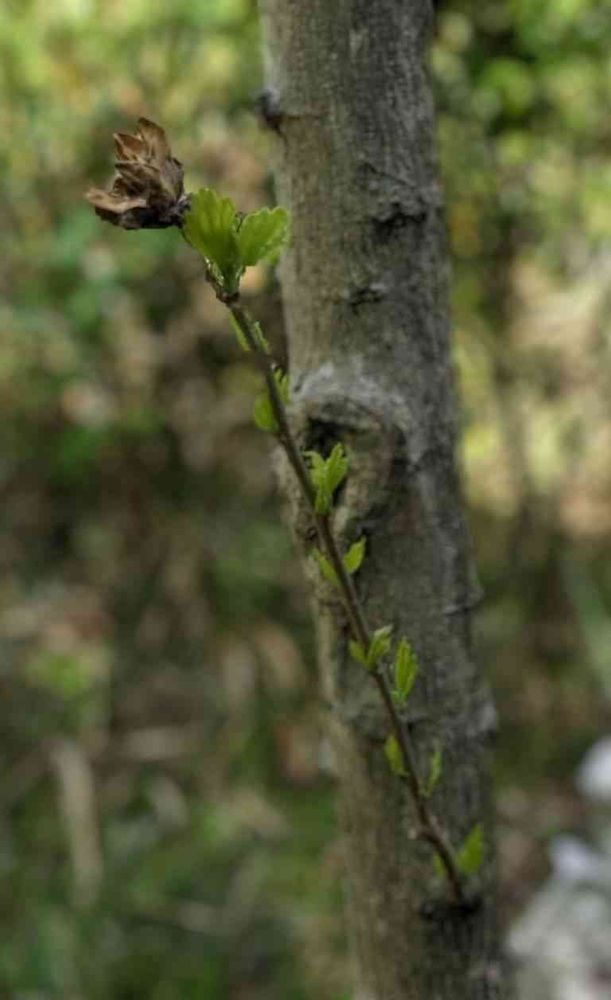ムクゲは実の殻を付けたまま、若葉がいっぱい生えていますね🍃