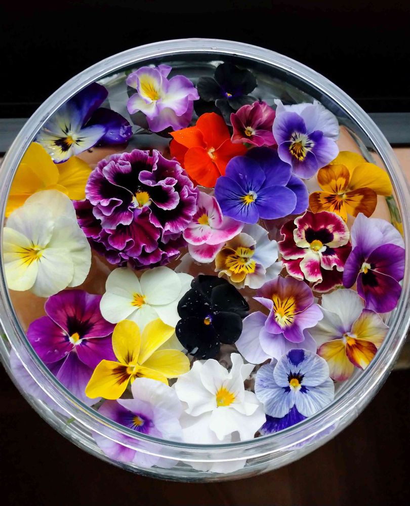 1日☔で何も出来ない😰ので、そろそろ終わりに近付いてきた❇️ビオラたちだけで花手水風🌻😂