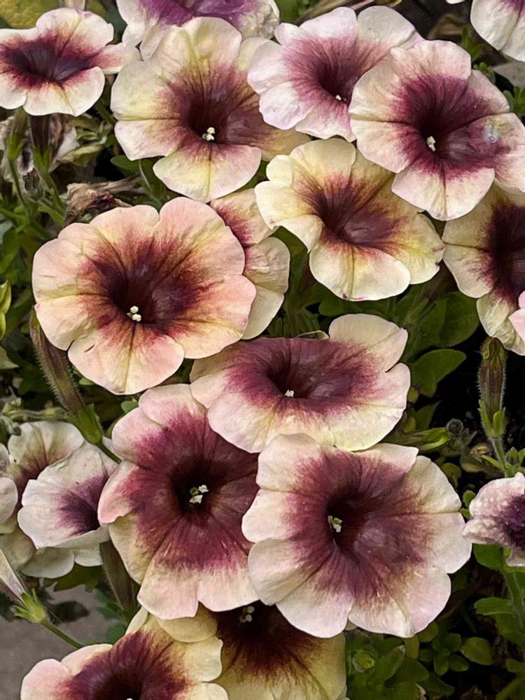 ペチュニアサンチュニアバターレーズン💛🤎💛冬越しした挿木チーム🙌親株は枯れてしまいました🥲少し咲き過ぎで枯れないか心配🥺