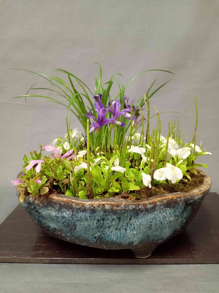 🌱皆んな仲良し🌱チベットアヤメ(青紫色の花)の周りをサギゴケ(白花🤍桃花🩷)とミズトクサで囲んで楽しそうです🎵🎶💓💕❤️❣️🥰