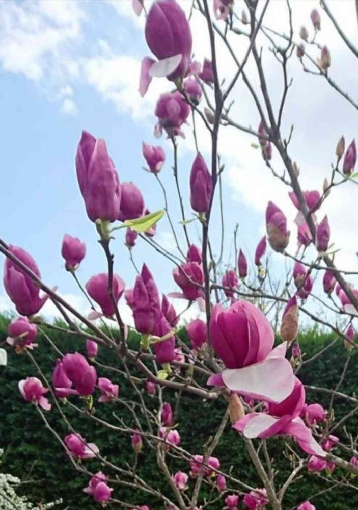 更紗木蓮(紫木蓮×白木蓮の交雑種でピンク色)、