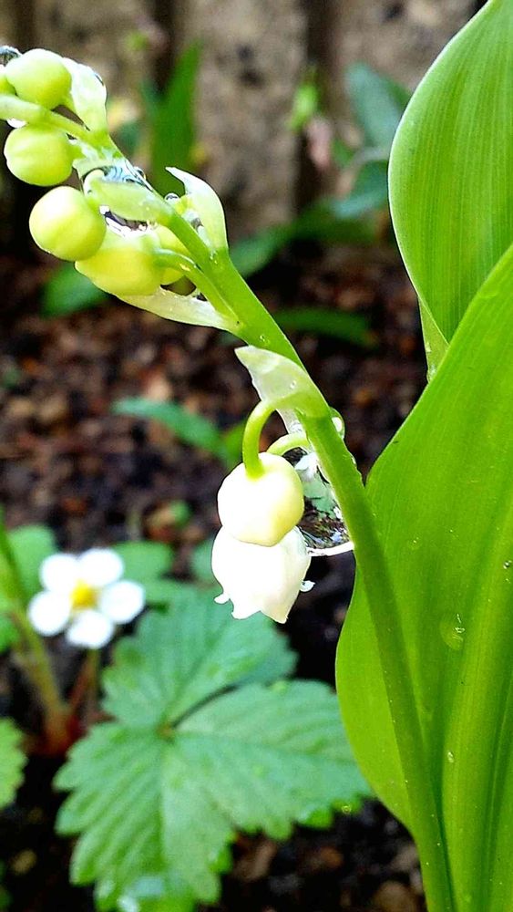 雨上がりの今朝、わが家のすずらん、咲き始めました🌱