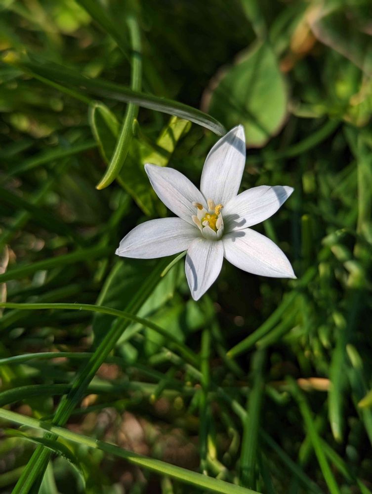 キジカクシ科オオアマナ属の多年草。英名は「ベツレヘムの星」だが、ハナニラなどもこの名称で呼ばれる。 花言葉は潔白、純粋、無垢、才能である。