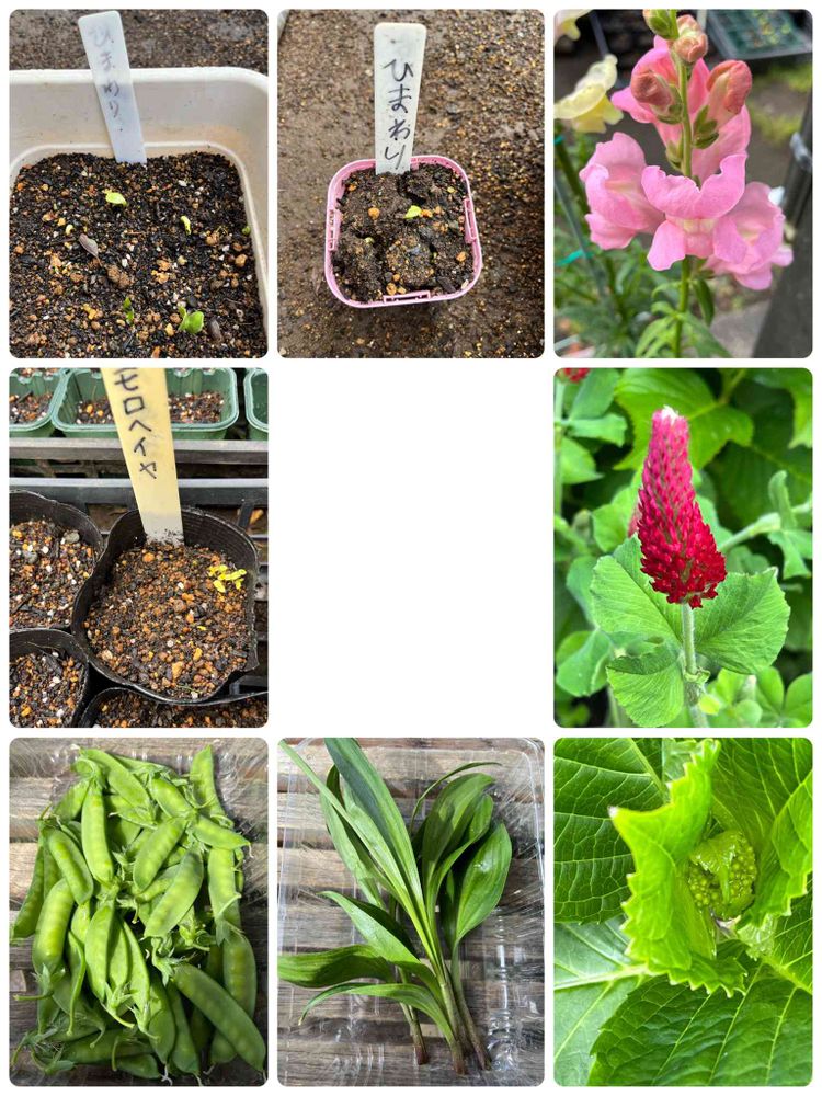 おはようございます。薄曇り、15.8℃、9:00ちょうどいい、昨日の花粉量18個少ない、昨日は一日中☔️で、黄砂も消え、久しぶりに快適な朝です。孫と種蒔きしたヒマワリ2世、7日目で発芽しました。100均モロヘイヤ8日目、発芽し始めました。キンギョ草、2本目が咲き始めました。ストロベリーキャンドル2世、220日目、咲き始めました。紫陽花、花芽を発見、今年も大きな花をたくさん見せてくださいなぁ〜。今日の収穫は、苗植えから1142日目、初収穫の行者ニンニク4本、100均絹さやえんどうでした。😻🥰😍😸☺️😋