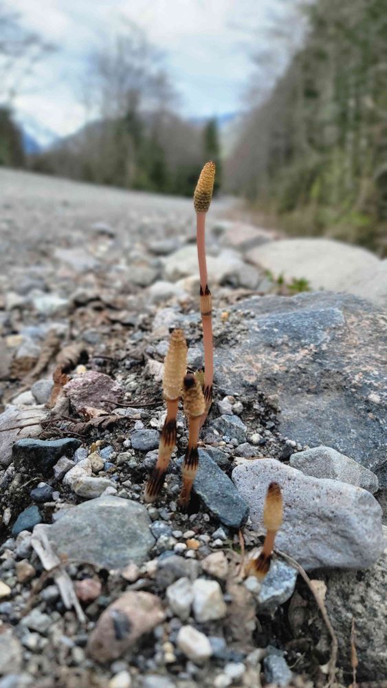 キャンプに行く途中で、つくしらしきにょきにょきを発見!