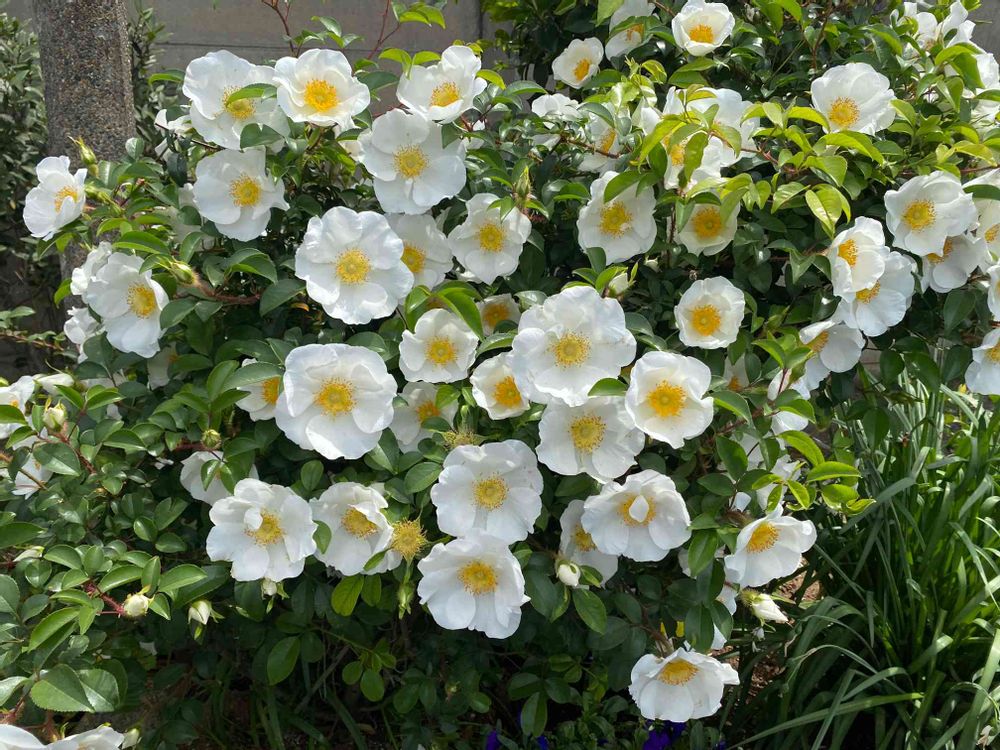 すると、家の前にこの綺麗なナニワイバラが咲いていて、思わずパチリ🤳