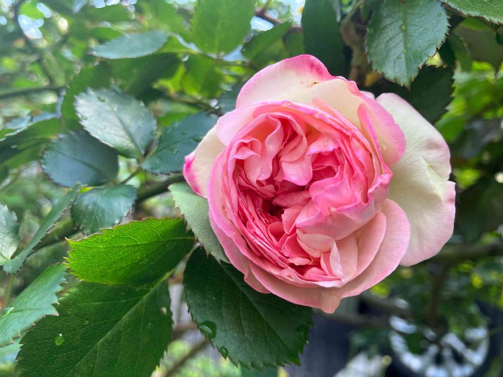 鉢植えのバラさんの蕾ばかり気にしていたらピエールさんが咲いていました🌹