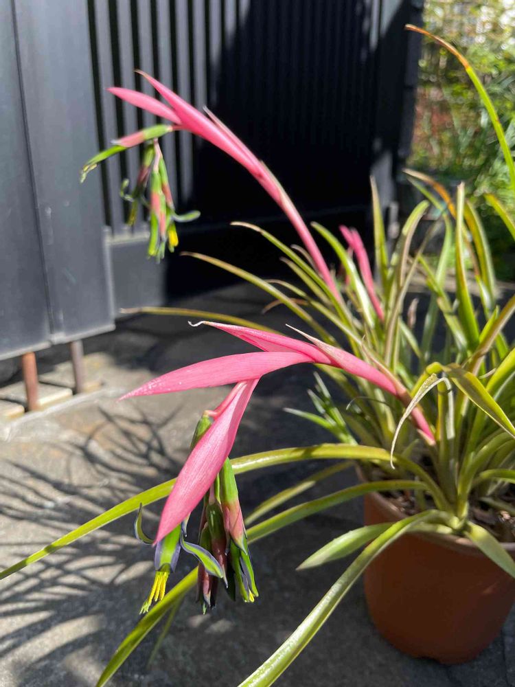 葉は硬く一年中緑です 3月末頃からピンク色の穂が出て4月に入って花が咲いてきました 名前を教えてください お願いします