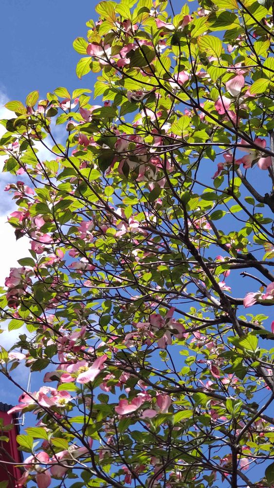 ハナミズキのピンクの「花」が盛りを迎えています。