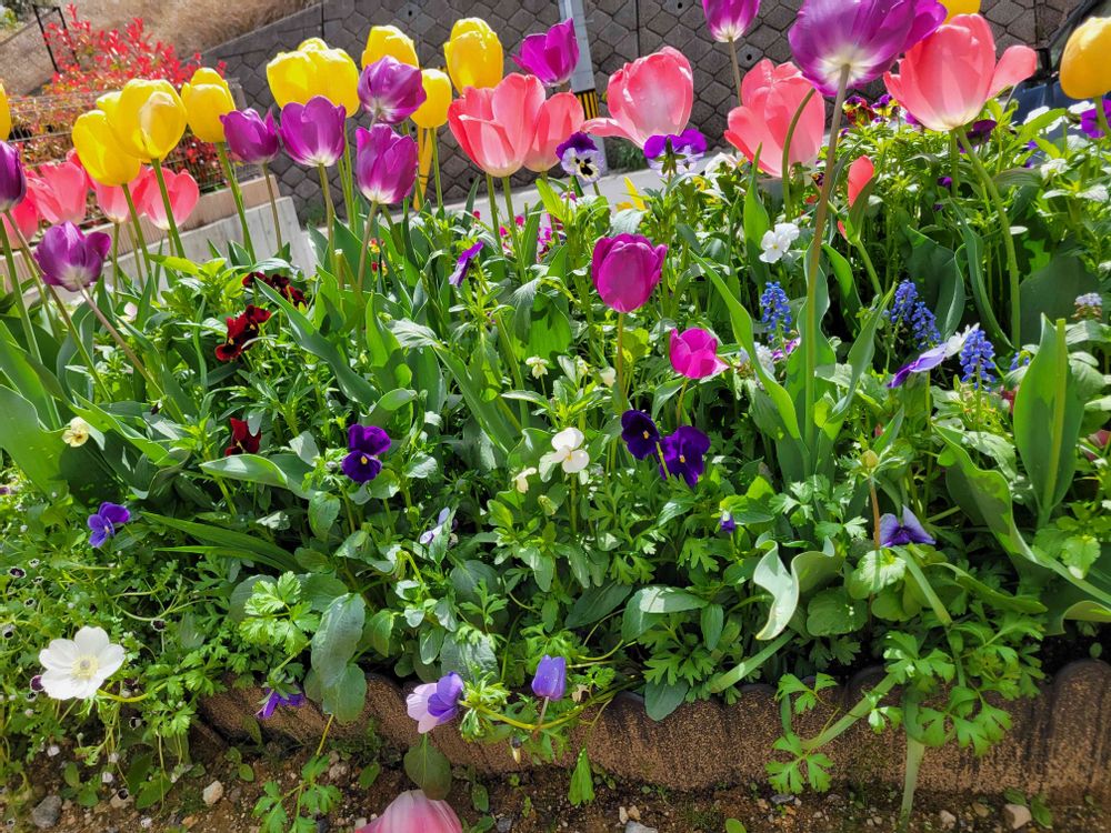 チューリップが終わりかけですが、アネモネや違うお花が代わりに出てきました。