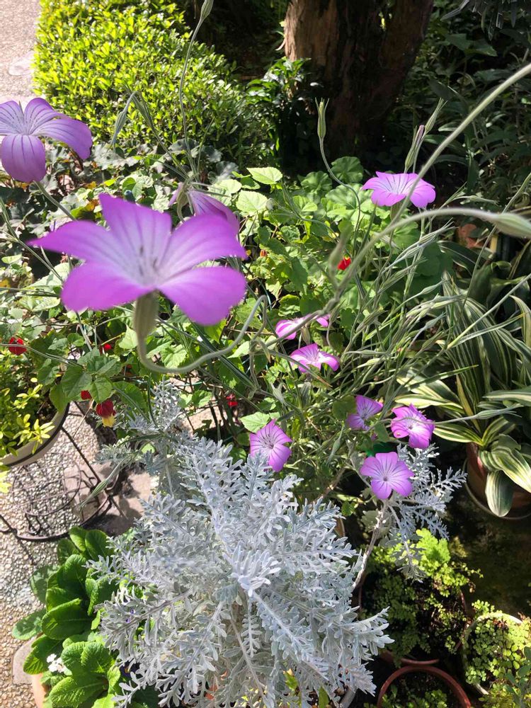 秋に種蒔きしたアグロステンマさん🌸春風に揺らいで気持ち良さそうに咲いています🌸🌿