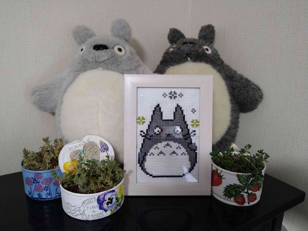 花友さんから頂いたセダムちゃんと、トトロのクロスステッチ🧵🪡